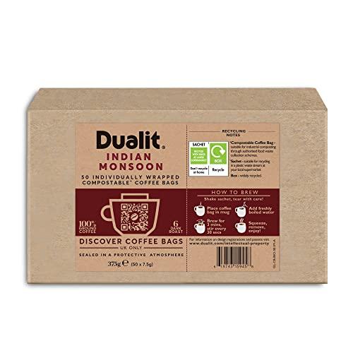 - STRENGTH: 6/10: Dualits full bodied, dark roasted Indian Monsoon Coffee Bags have notes of fresh toast and indulgent dark chocolate with a subtle spicy finish. The Indian Monsoon coffee is a single origin coffee, sourced from small farms in India and is made using 100% Arabica beans.