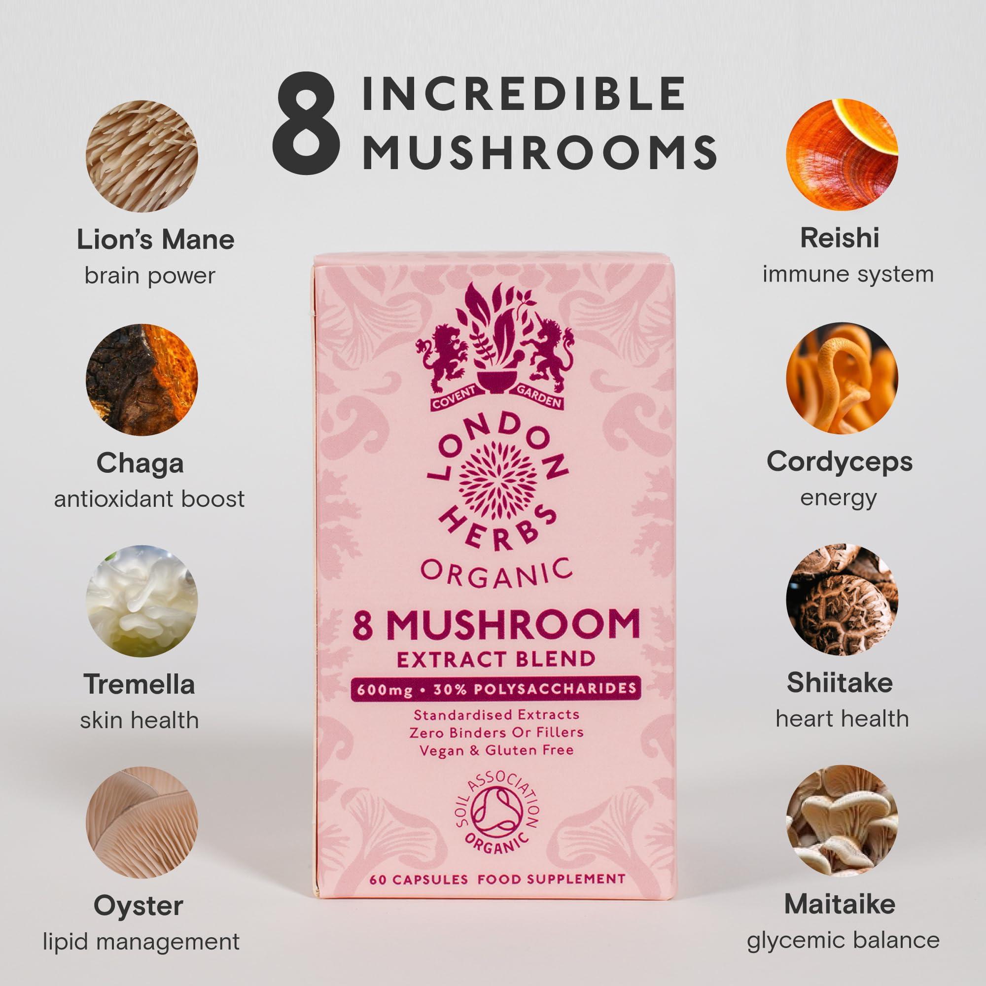 - CERTIFIED ORGANIC - Made from the highest quality medicinal grade mushrooms our 8 Mushroom Supplement is certified Organic by the UK Soil Association.