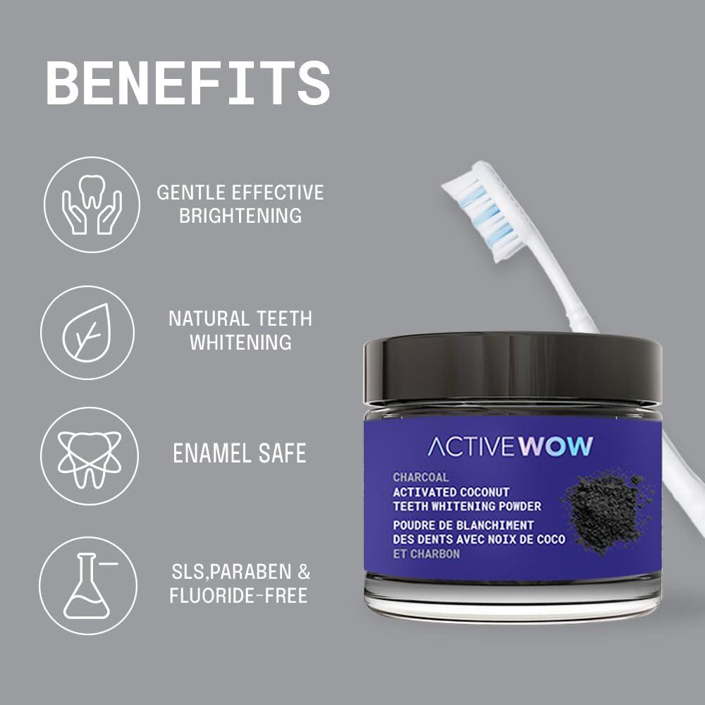 Active Wow Teeth Whitening - Charcoal Powder Natural Teeth Whitening