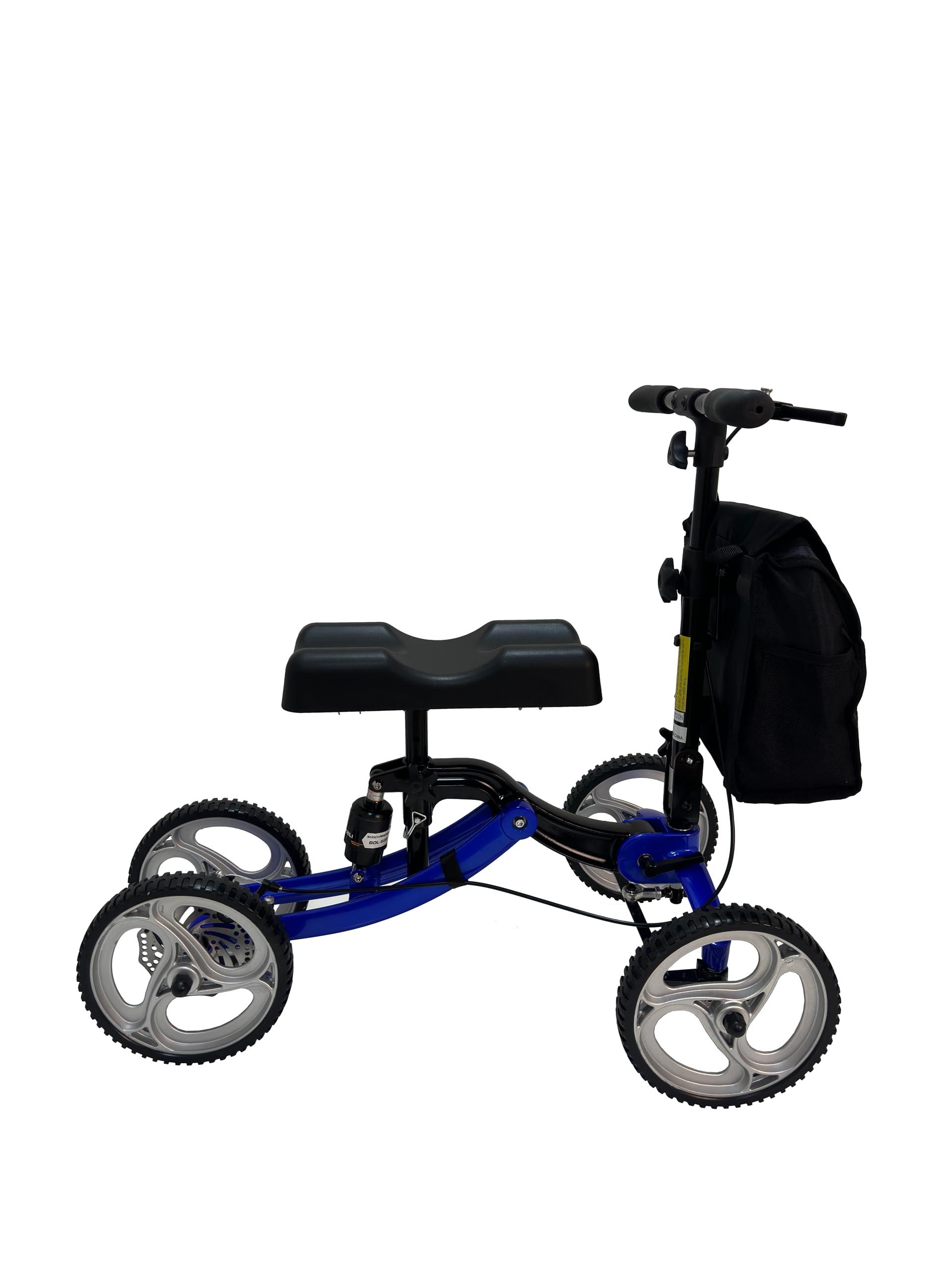 This steerable knee walker is designed for people who have difficulty walking, or are recovering from an injury.