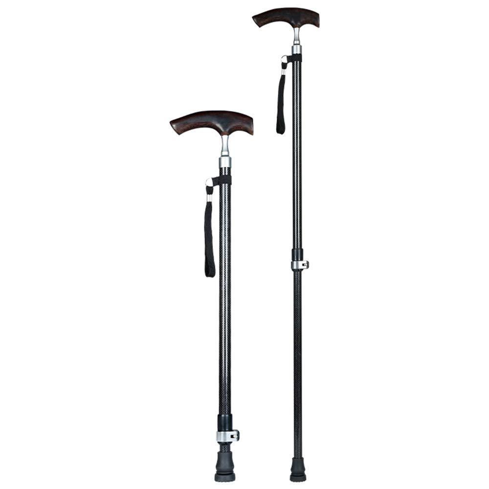 Adjustable Walking Stick, Lightweight Carbon Fiber Walking Cane With Wooden Handle,Anti - Skid Crutches For Man And Woman