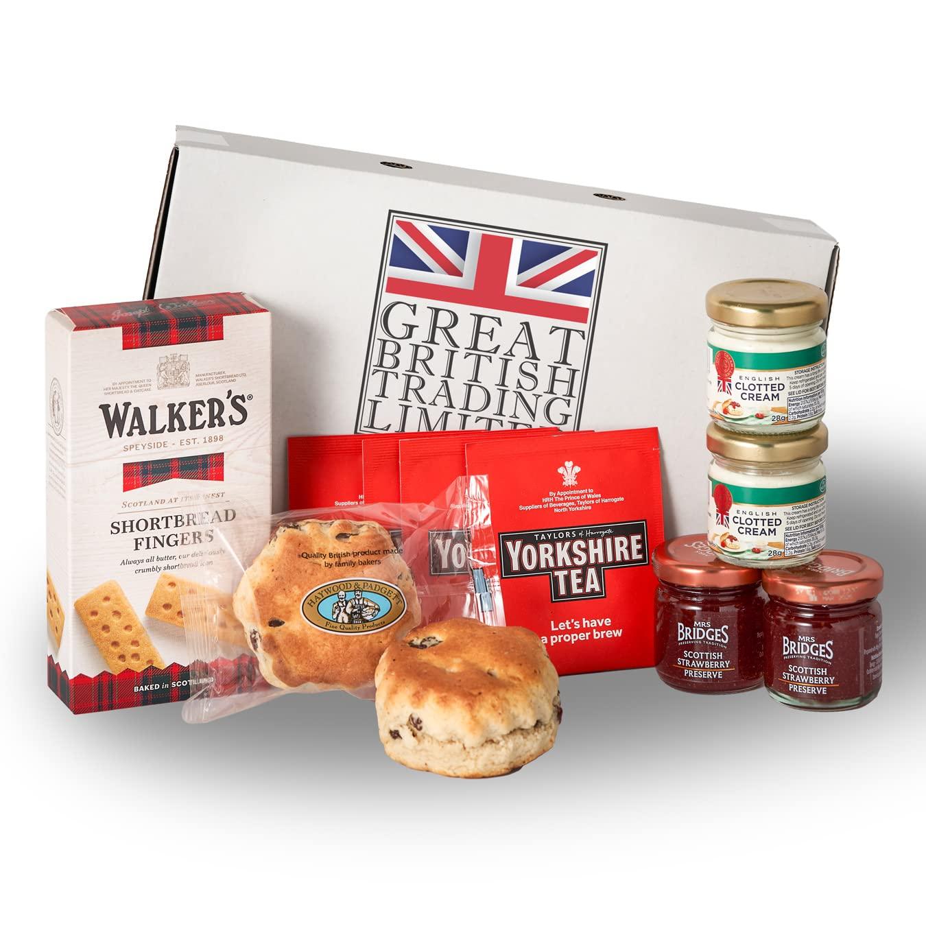 - WHATS INCLUDED: 2x Fruit Scones, 2x 42g Scottish Strawberry Jam, 2x 28g English Clotted Cream, 4x Tea Bags, 1x Box 10 Shortbread Fingers