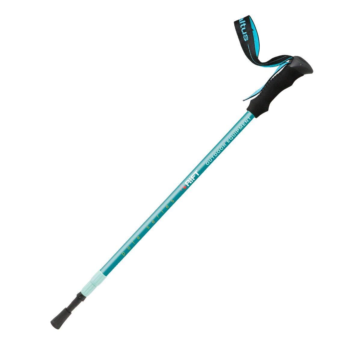 Trekking cane with 3 sections adjustable, by means of threads and with anti-shock system, widia tip with nut and rubber guard. High density non-slip lathed foams