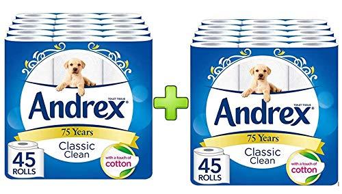 - Andrex Classic Clean Toilet Roll Tissue Paper 90 Rolls Bulk Multi Pack Offer