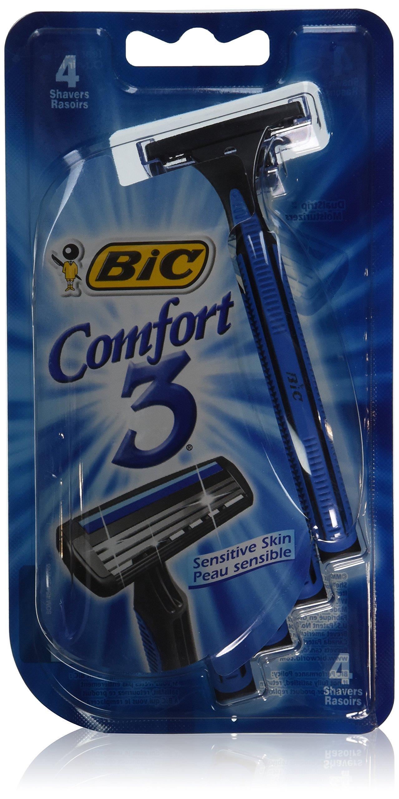 BIC Men's Comfort 3 Advance Shavers for Men with Sensitive Skin 4-Count