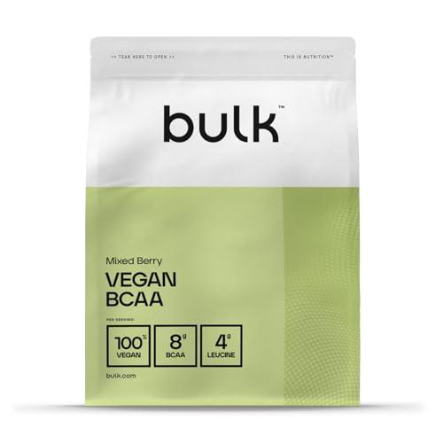 Bulk Vegan BCAA is an easy mixing, Branched Chain Amino Acid powder that is suitable for vegans. It is the perfect choice for intra workout, or to sip on throughout the day, delivering a constant supply of important essential amino acids to the body. Bulk Vegan BCAA combines Leucine, Isoleucine and Valine in a 2:1:1 ratio. It uses only 100% pure fermented Leucine, Isoleucine and Valine with a small amount of sunflower lecithin for superior quality and easy mixing. BCAAs are considered essential in that they are not produced by the body and must be obtained through our diet. If they are not present in our diet, we would be unable to survive. BCAAs comprise about 1/3 of the protein within our muscles and contribute to the growth of muscle mass, due to their protein content. Furthermore, BCAAs contribute to the maintenance of muscle mass. Vegan BCAA Powder is available in a range of delicious flavours.