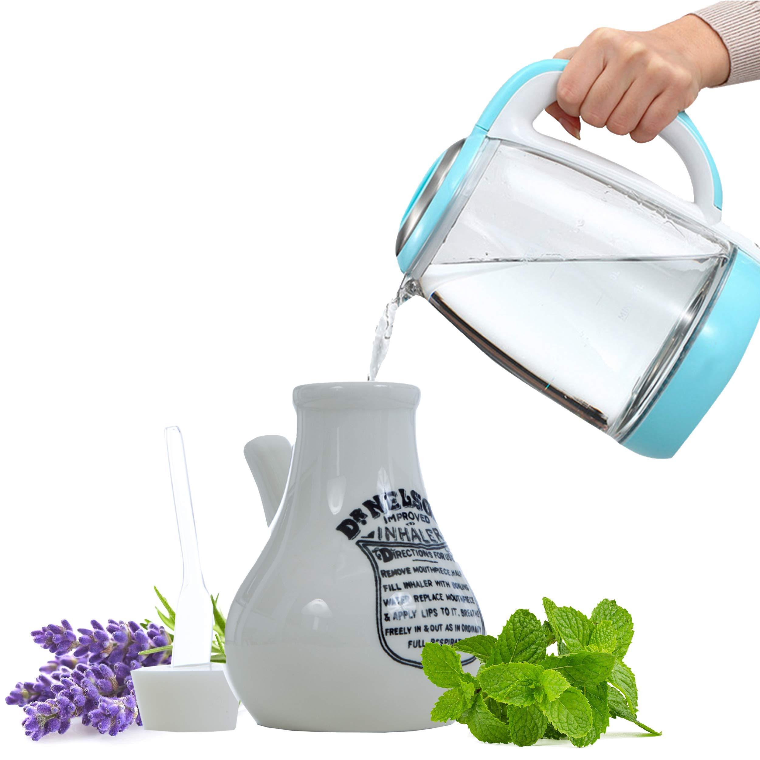 - BEST FOR HOME USE - The inhaler is a small pot - size of an inhaler cup, easy to use and handle which you can carry anywhere in the house, it is well insulated for heat retention and easy to hand hold. Use it on its own for the lovely doses of warm moist steam or for an even effective reaction, add infusions such as throat pastilles, Vicks scent pads or other aromatherapy herbs such as peppermint, eucalyptus or lavender