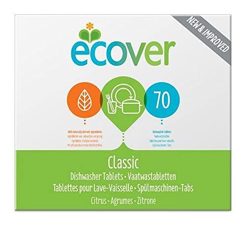 Ecological dishwashing tablets with 70 tablets. Ecover dishwasher cleaning products are made to be effective and have the absolute minimum effect on the environment. They're based on sustainable plant and mineral ingredients, chosen to work well and limit the chemicals in your home and the environment. All Ecover products originate from ecological factories.