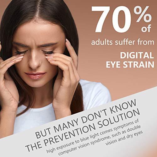 - PROTECT YOUR EYES- Laptops, tablets and smartphones have become more and more integrated into our daily lives. Even most of us spend at least eight hours a day in front of a screen at work. Prolonged and repeated exposure to blue light can have a number of ill-effects on our bodies,from headaches and eye strain to straight-up insomnia.It's time to prepare a pair of FONHCOO blue light glasses to protect your eyes from blue light.