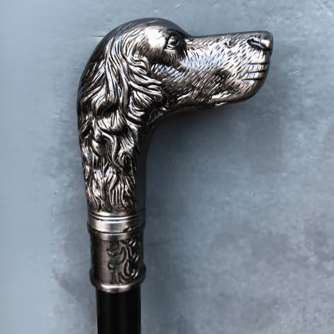 - Hand-crafted by artisans, this dogs head walking stick has been carefully lacquered to protect the shaft and fitted with a solid pewter handle. The Head of this stunning Walking Stick is made from zinc coated pewter and sits on a shaft of hard iron.