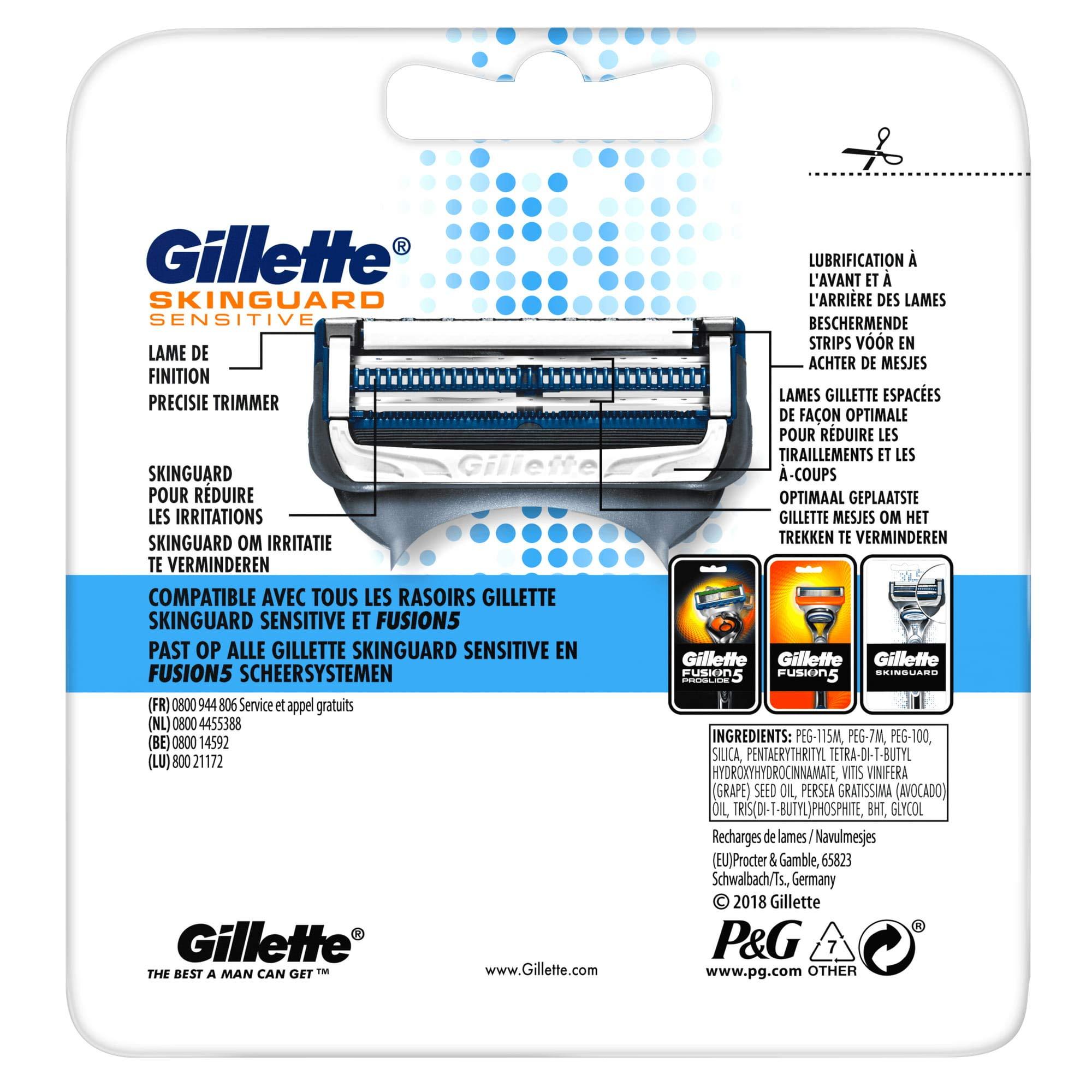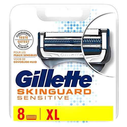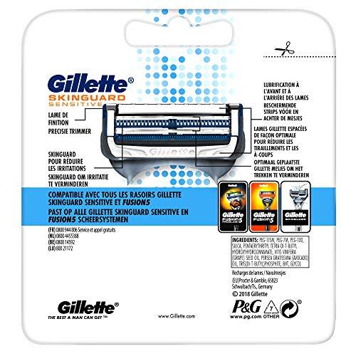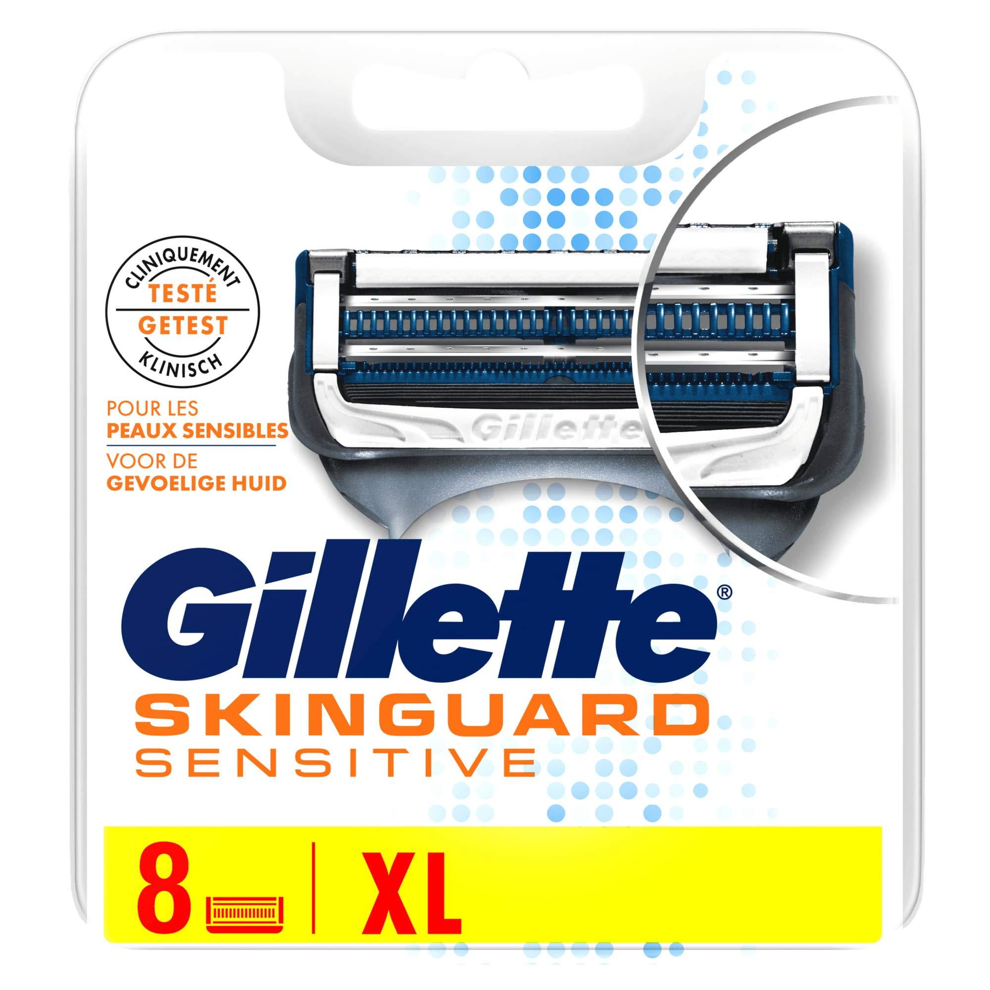 Gillette SkinGuard Sensitive razor blades for men are the first blades with unique SkinGuard to protect skin while shaving. The SkinGuard reduces blade contact with the skin. Thanks to optimal blade spacing and skin protection before and after the blades, friction is minimised and skin irritation is prevented