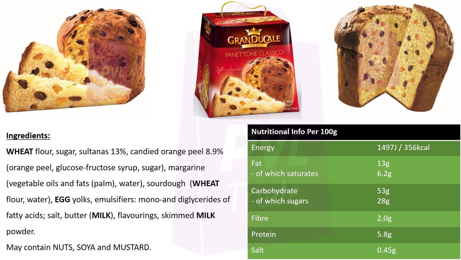 - 500g of Authentic classic panettone with sultanas and candied orange fruit. Delicious, light & fluffy textured panettone bursting with fruity flavour.