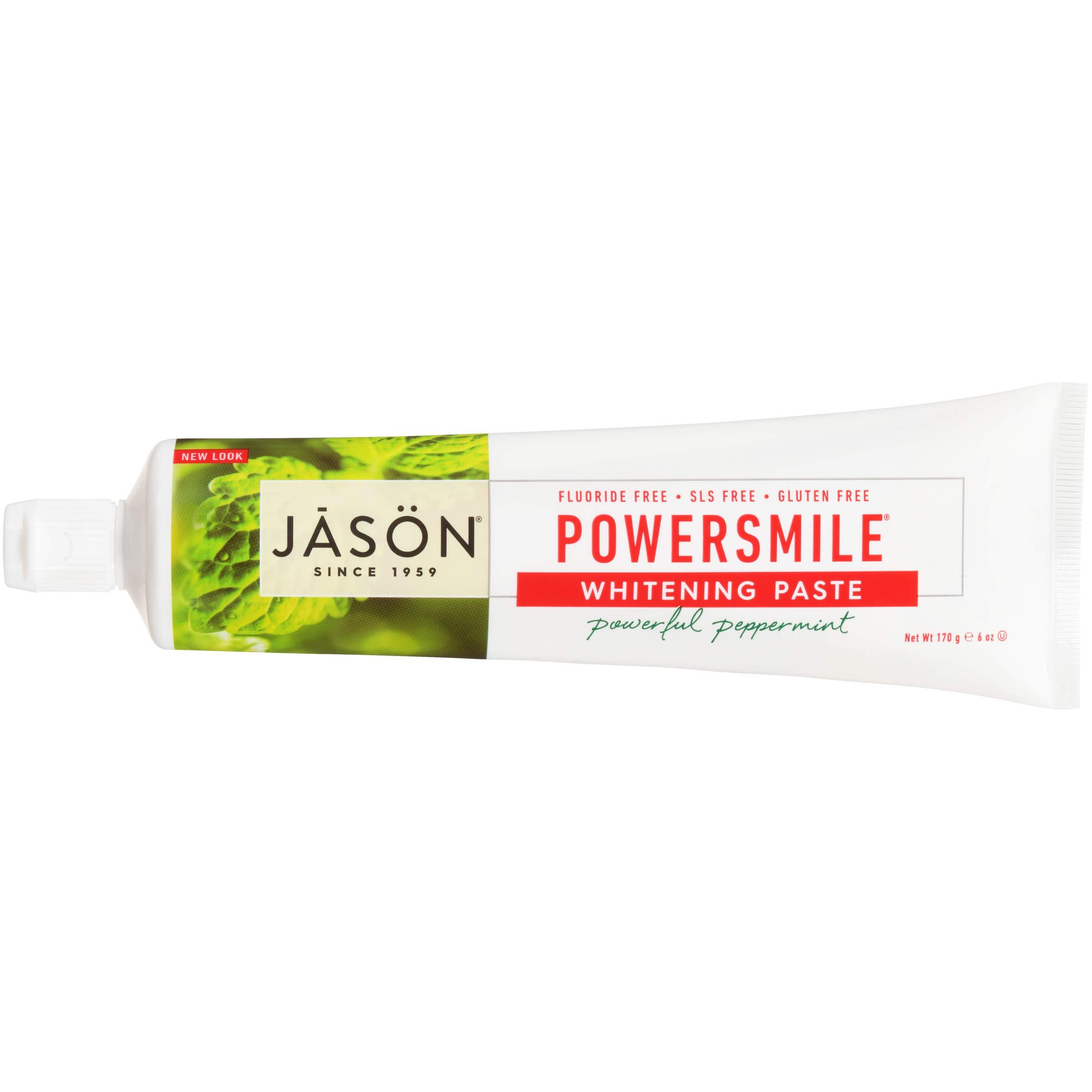 PowerSmile Toothpaste - All natural whitening peppermint toothpaste Power up your smile with JASON PowerSMile toothpaste. Whitens teeth with 3 natural whiteners - Bamboo, Calcium Carbonate and Silica. Helps prevent plaque build up and aids in inhibiting the growth of oral bacteria. Natural essential Oils of Peppermint to the Max breath fresheners blast halitosis away. *3 natural whiteners whiten teeth without chemicals or harsh abrasives *Perilla Seed Extract helps block sugar acids that form tartar on teeth. *No Fluoride, Sodium Lauryl Sulfate, Saccharin, Preservatives or Animal Testing