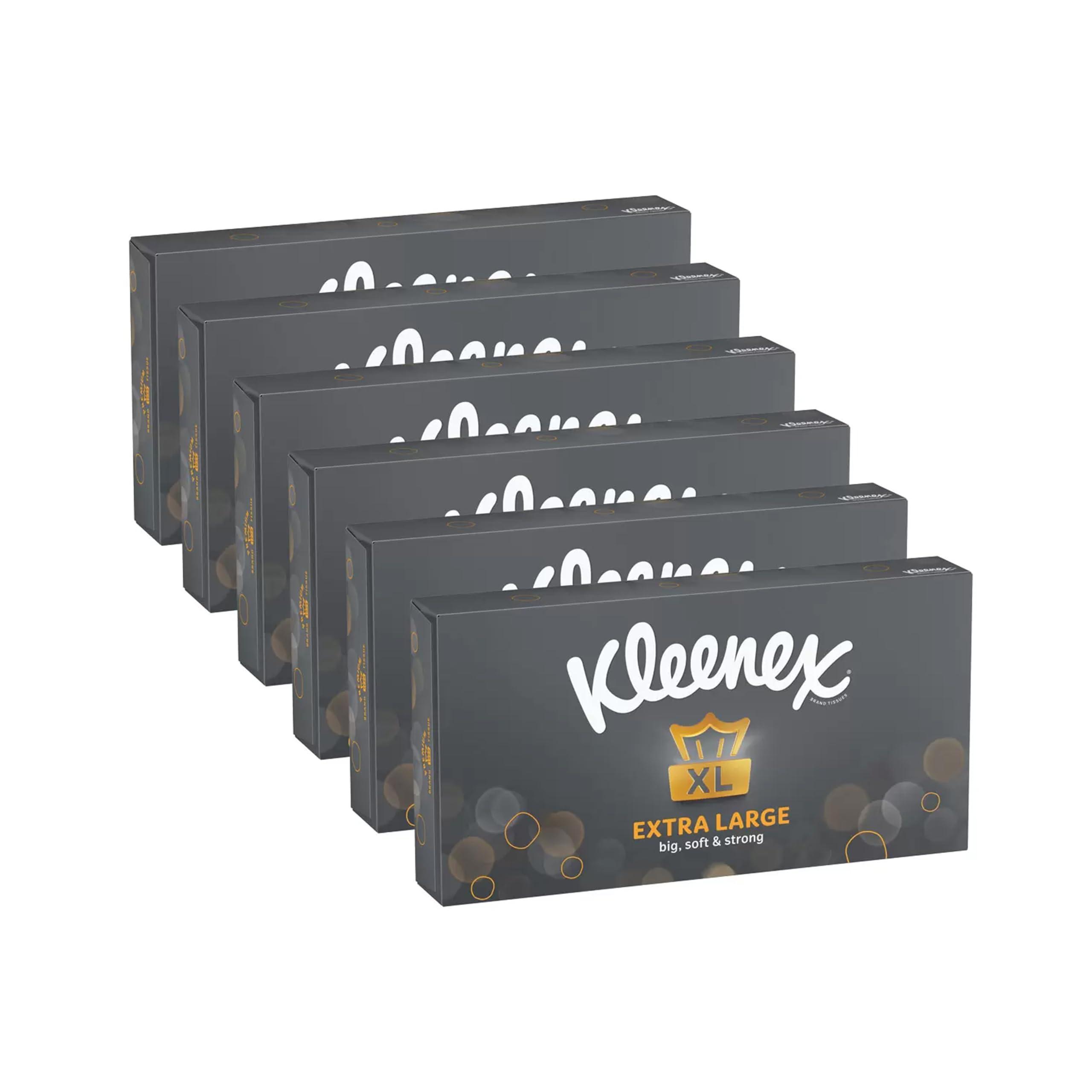 Kleenex Extra large facial tissue for men 90 sheets - Pack of 6 extra strong and extra large, this box of 90 Kleenex man-size tissues is ideal for catching coughs and sneezes wherever you are. Just because they're man-size doesn't mean they're not soft; with a comforting absorbent texture and strong construction for the worst of colds. The handy box dispenser is great to keep on your desk at work or at home for instant access. Kleenex Extra large tissues. Sometimes we need a little softness with our strength. Kleenex Extra large tissues are comfortingly soft and strong so you can be confident it won't let you down. Kleenex Made for living.