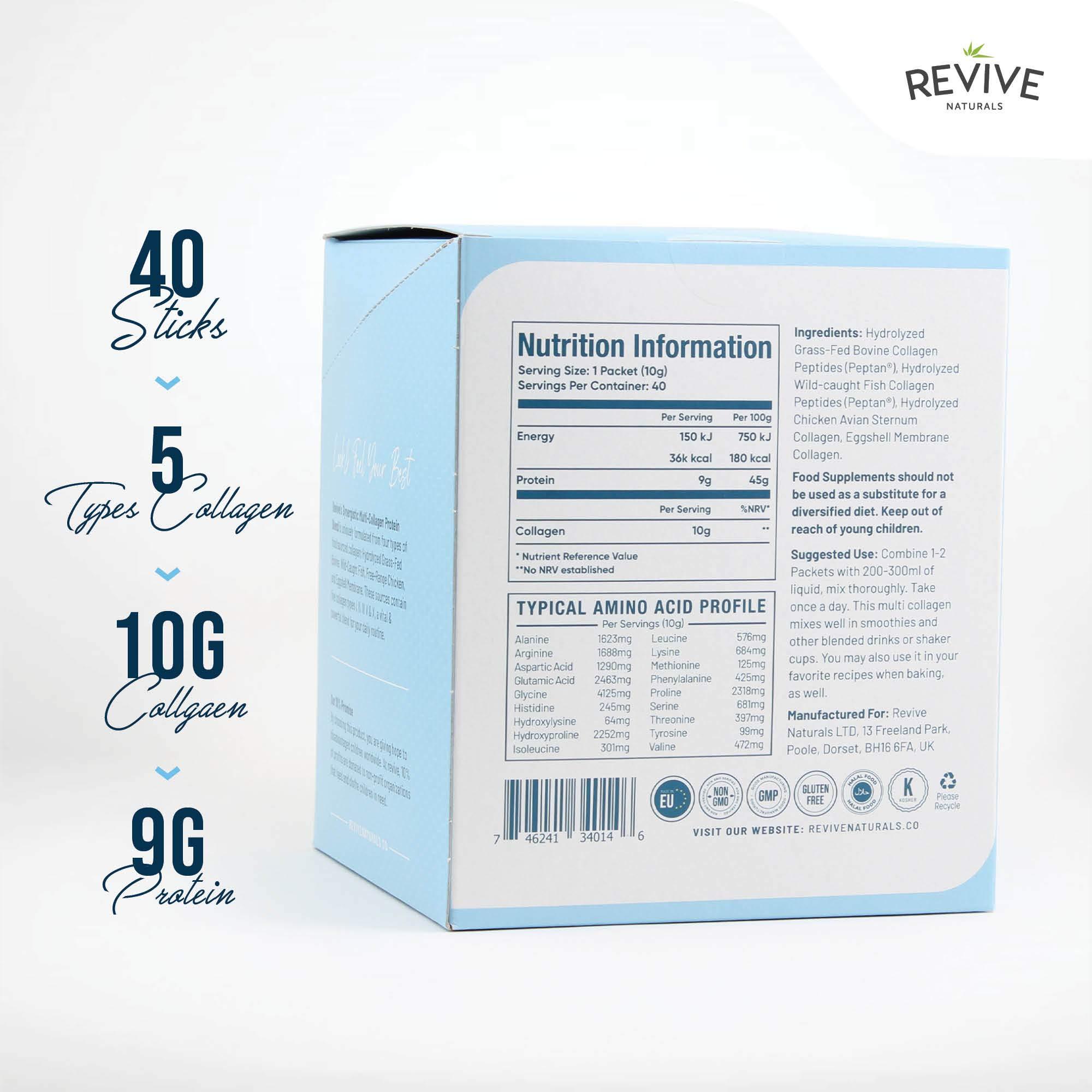 - MULTI-COLLAGEN FORMULA: In order to provide the highest quality collagen available, our collagen is formulated from multiple sources, including eggs, chicken, fish and hydrolysed bovine. Together these sources create a synergistic blend which provides five different types of collagen, types I, II, III, V and X. Carefully crafted and lovingly perfected, our multi-collagen protein is optimised for maximum potency and results.