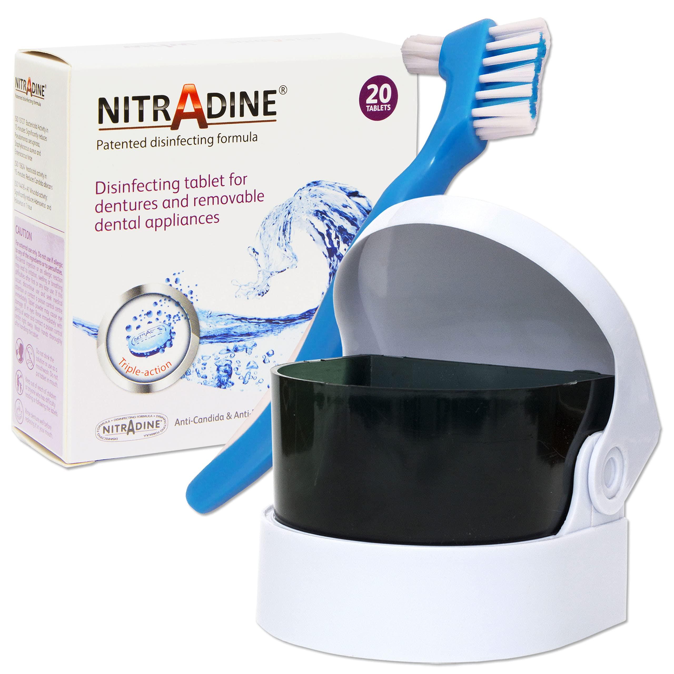 Nitradine Tablets are the universal choice for cleaning and safely disinfecting all types of removable dental appliances. Its effectiveness and simplicity of use make it the ideal choice for complete peace of mind when it comes to dental appliance hygiene. Nitradine comes in tablet form saving you time and hassle. Buy Nitradine Tablets to Clean & Disinfect : Night Guards Bite Raising Appliances Ortho Retainers Bleaching Trays Gumshields Mouthguards Anti Snore Devices Recommended dosage: Based on clinical testing, we recommend to begin the treatment with a daily use of the tablet for 21 days. This will ensure the reduction of the biofilm to a lower level. You can then adjust the usage based on your needs with a minimum usage of 2 times per week. Sonic Cleaner is a cost effective solution for hygienic denture maintenance that is a handy storage case for your cleaning solution. Requires 2xAA batteries