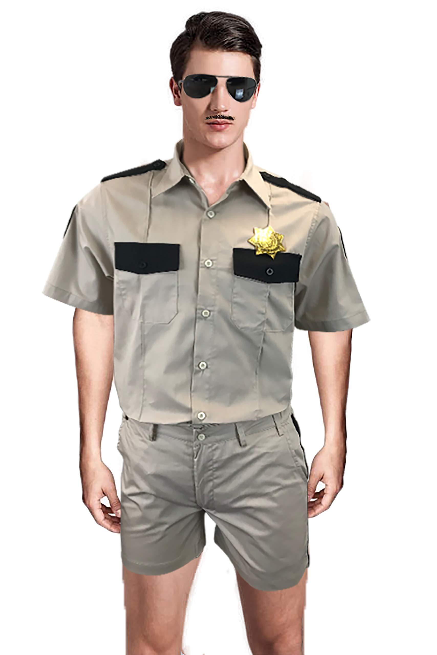 - Khaki Sheriff Costume Thant Includes: Shirt , Pants , Badge, Patches and Sunglasses