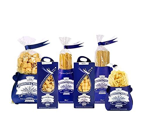 Pasta CAVALIERI Box Tasting Pasta 3.0 KG: SPAGHETTONI - RUOTE PAZZE - RIGATONI - MEZZE Maniche - LINGUINE - FUSILLI Handmade Product Made in Italy