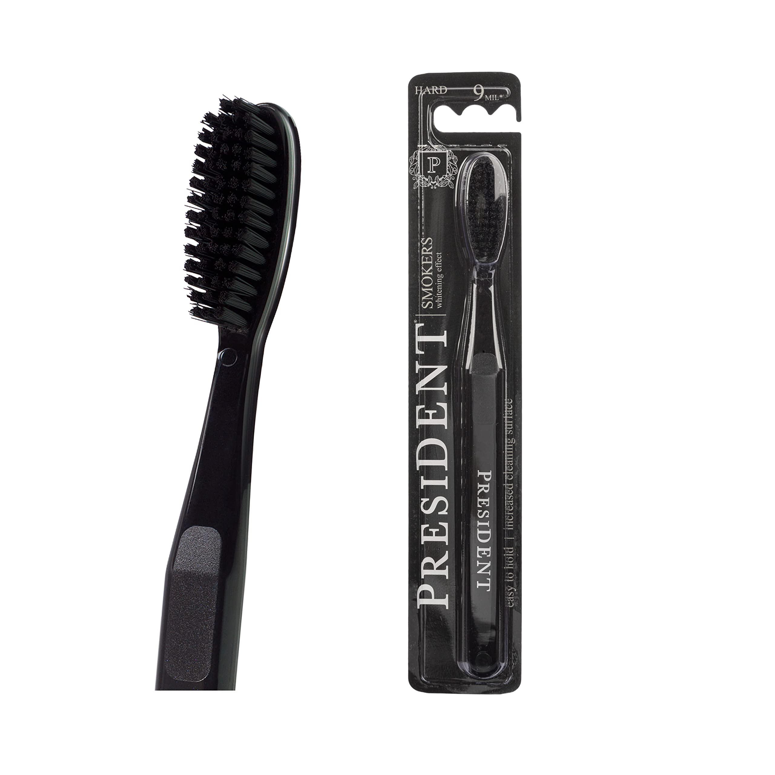 - WHITENS & REMOVES PLAQUE: This hard toothbrush is made for those with staining or adults in need of extra polishing power. It is ideal for twice-daily brushing. The increased cleaning surface and increased number of bristles help you reach the back teeth and all areas of the mouth. PRESIDENT's dentist-recommended products help you have a healthy mouth and bright, white smile.