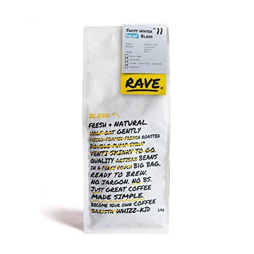 - Rave Coffee - Swiss Water Decaf Blend N 11, Filter Grind Freshly Roasted and Ground Coffee 1Kg is a medium roast coffee blend.