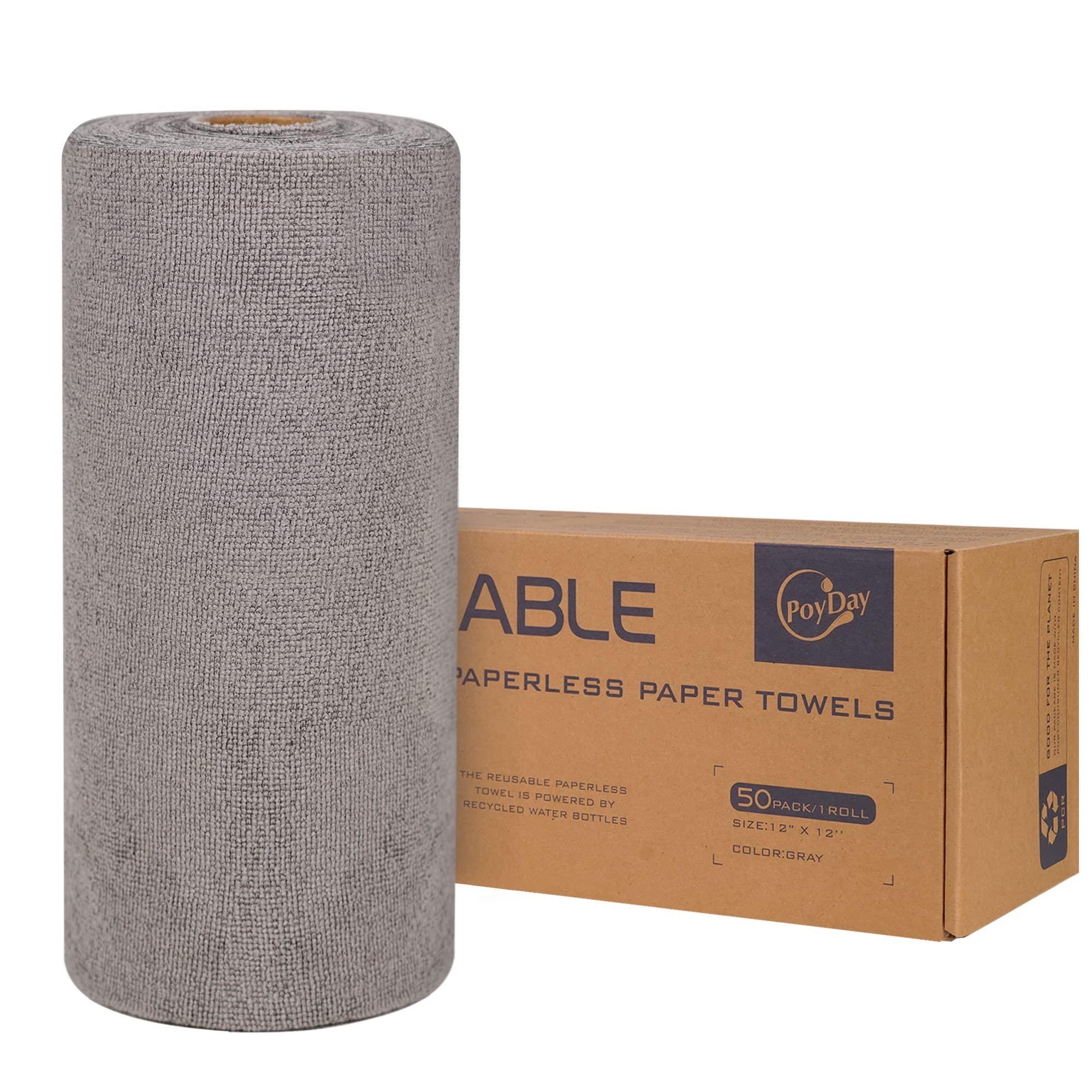 - GOOD FOR YOUR HOME & PLANET: Poyday reusable paper towels are made from recycled microfiber from plastic bottles. Each paperless paper towel you use means you recover and recycle 1.6 20 oz plastic bottles. As paper towel alternative, one reusable microfiber towels roll can replace tens of thousands of regular paper towels. Save lots of money and the planet