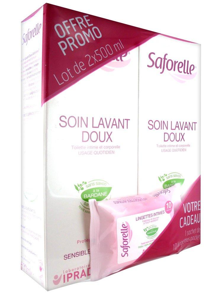 SAFORELLE is a duo of products intended for the intimate hygiene of women. SAFORELLE SOFT WASHING CARE is a cleansing formula specially designed for your daily intimate toilet. It allows you to make your intimate toilet gently. This cleansing treatment softens and soothes mucous membranes and sensitive or irritated skin. It calms irritation and itching. The gentle cleansing care from Saforelle respects the natural balance of your vaginal flora. Thanks to its softening properties, it gives you better intimate comfort. SAFORELLE WIPES facilitate intimate cleaning. Impregnated with a soap-free cleaning solution and with its mild alkaline pH, these wipes bring you refreshment and comfort. Practical, you can use them in any circumstance (on the go, during menstruation, after sports, before a medical appointment...). Made of 100% biodegradable natural fiber fabric, you can safely dispose of them in the toilet.
