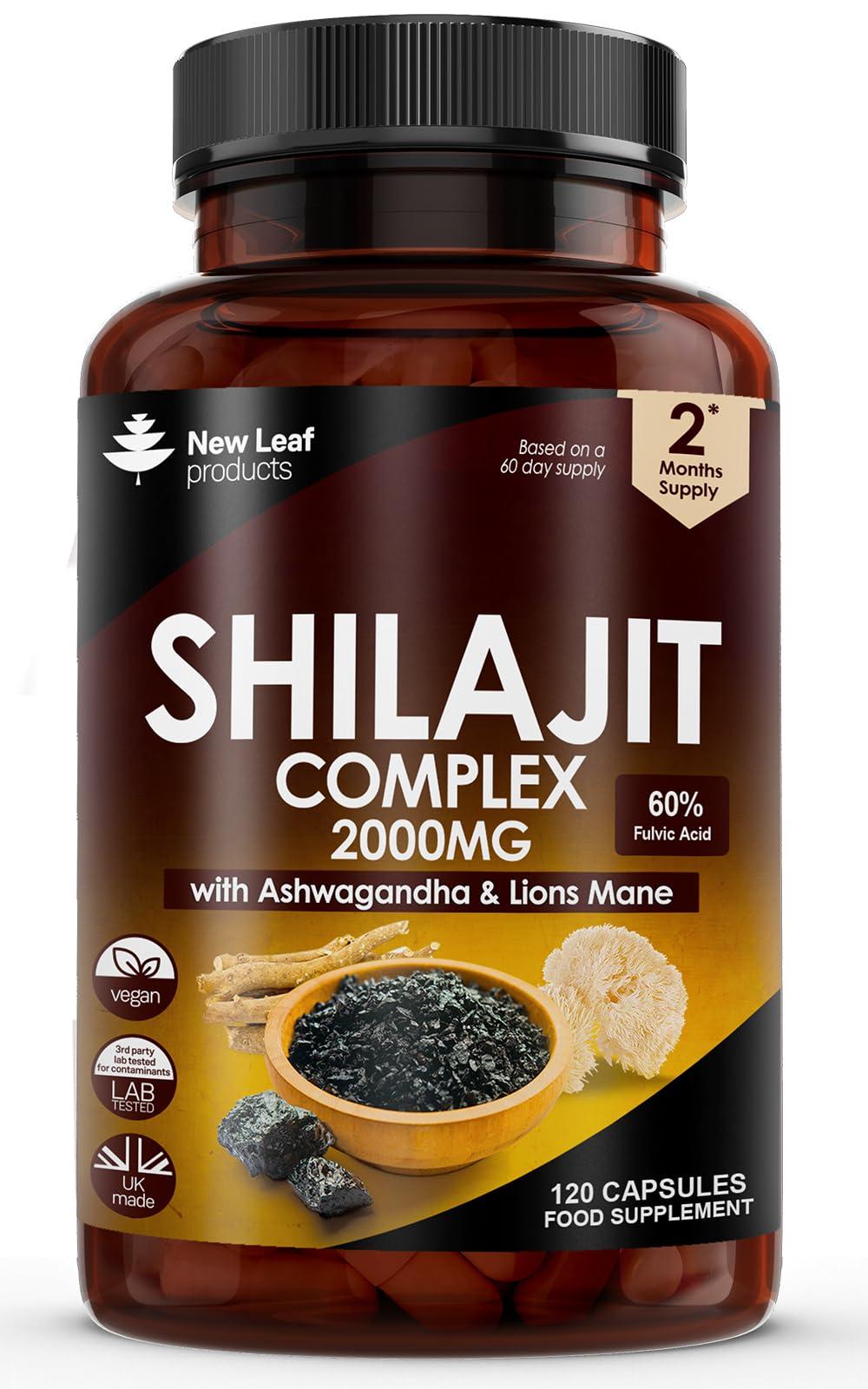 - DISCOVER THE POWER OF NEW LEAFS SHILAJIT COMPLEX - Dive into the ancient wisdom with New Leafs' Shilajit Complex, a potent blend of traditional elements, offering 120 capsules per bottle for a two-month supply. Each serving provides 2000mg of Shilajit, enriched with Ashwagandha root extract and Lion's Mane mushroom extract. Sourced from the pristine heights of the Himalayas, Shilajit is a resin known for its rich content of 60% Fulvic Acid, enhancing the blend's overall efficacy.
