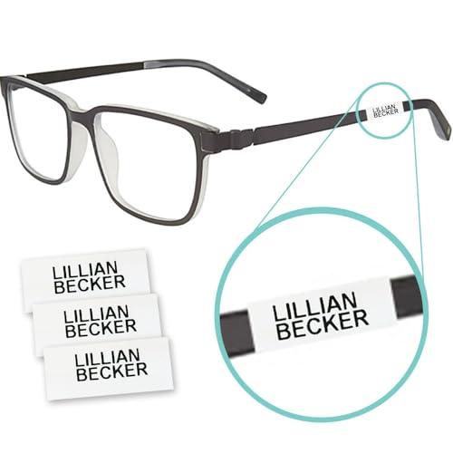 ShrinkTags for Glasses - No Glue, No Mess, No More Lost Specs! Our spectacle tags apply with a hairdryer and shrink onto the arm, to discreetly identify glasses belonging to a child, or person in a care home. This pack of 3 glasses labels come in black print on white material for easy visibility. One or Two lines of text with 12 characters / spaces per line.