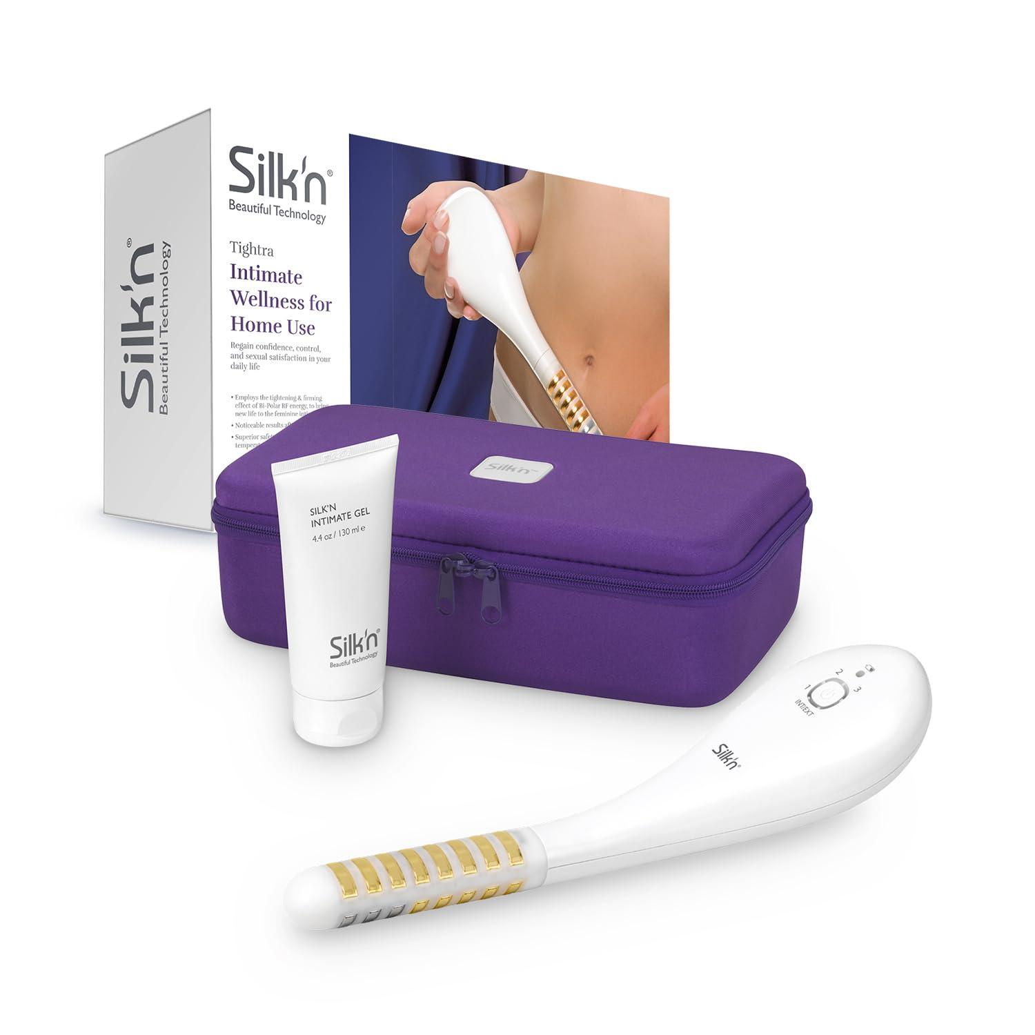 Pain-free intimate care at home for better well-being, sensitivity and sexual satisfaction, along with preventive urine loss and dryness. Bipolar hf energy: improved blood circulation, formation of elastin and collagen fibres, strengthening of the pelvic floor muscles, and tightening of the labia. Inside: gel on electrodes, vaginal insertion, 2 steps; outside: shaved skin, gel only on chromed electrodes, moving over/between labia. Safe operation thanks to its heat sensors, movement sensor, and protection, automatic switch-off (20 min.). Contents: 1 Silk'n tightra intimate care, incl. Case, intimate gel, USB cable + Plug, weight: 224 g, colour: White, TI1PE1001.
