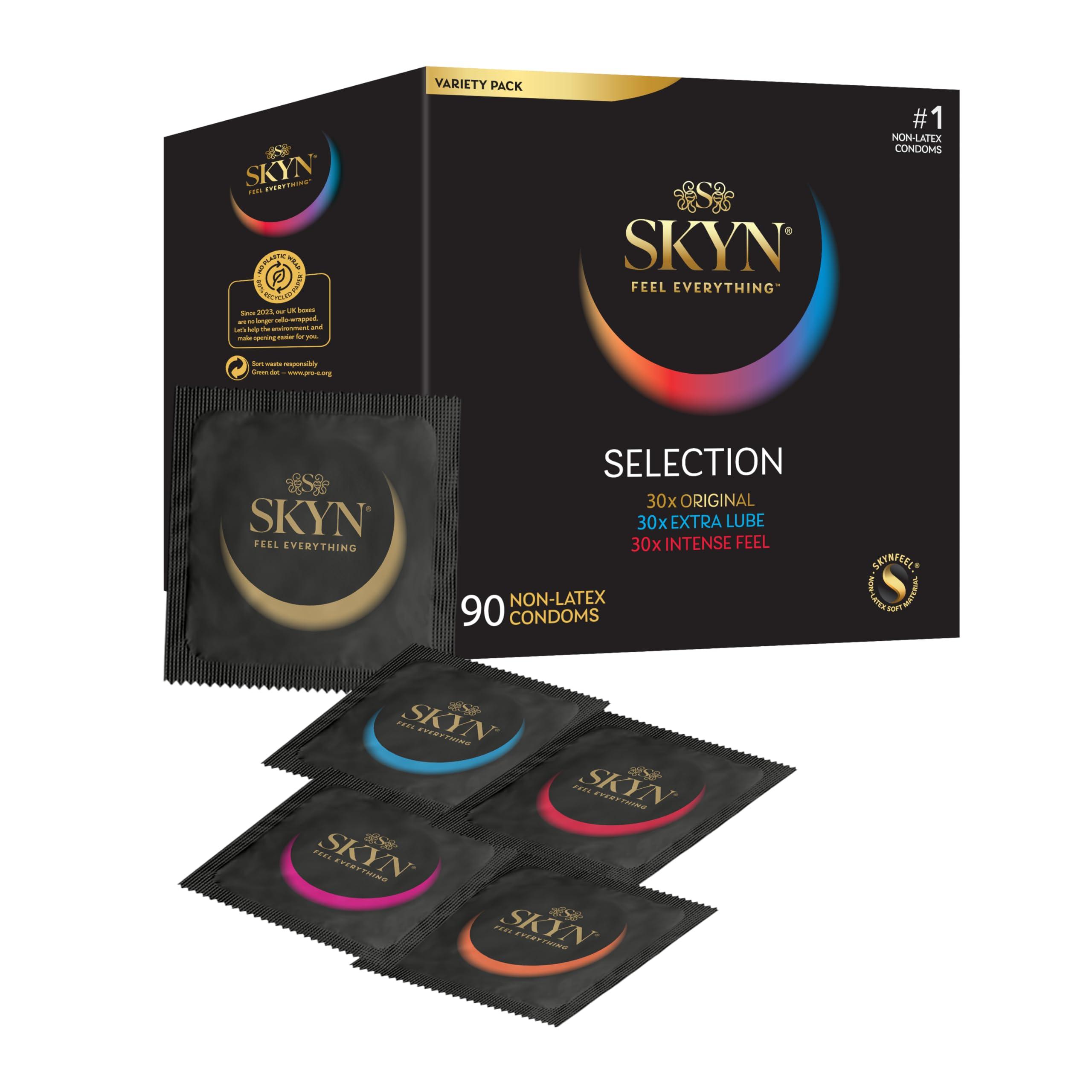 - SKYN's NEC PLUS ULTRA: The SKYN Selection assortment includes 3 types of lubricated latex free condoms, including 3 Original, 3 Intense Feel and 3 Extra Lube.