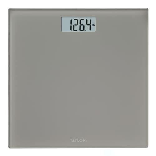 This stylish gray glass finish scale features a durable, 11.0" x 11.0" tempered glass platform. The 2.7" x 1.1" digital display allows for easy viewing of weight readings up to 350 pounds. With a high 350-pound capacity and precise 0.2-pound increments, this scale offers accuracy and convenience with instant on, auto off, and a low battery indicator. It comes with 2 AAA batteries included and a 5-year limited warranty.