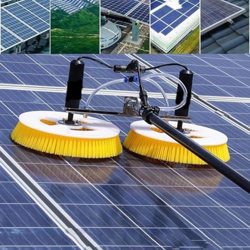 - [Super Clean]Double brush heads rotate in opposite directions to balance, the electric brush rotates at high speed to spray and rub, and at the same time, it can powerfully remove dust and sticky dirt on the photovoltaic panels. Greatly improve the power generation efficiency