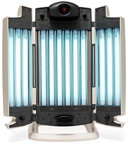 Our facial tanner gives you an attractive tan all year round. Fitted with 12 UV tubes the unit is shaped to reach the face and neckline area. The Facial Tanner allows you to tan in the comfort of your own home, any time you choose. That's why it is perfect for busy professional men and women.- Low UVA/UVB ratio - Standard EN 60-335-2-27, Complies with European legislation- Compact size > Dimensions Open - H41 W26 D40 / Dimensions Closed - H41 - W26 - D27 - Boxed-product Weight : 7 kg - Clean attractive design - Aluminium reflectors reflector gives the light an extra reflection, for a perfect and even tan - Power : 300 W, 230 Volt - Simple to operate. Arrives fully assembled, delivered direct to your door with user manual- Protective eye goggles included- Easy to transport and store.- Warranty : 2 years, no maintenance.Enjoy professional-grade facial tanning in the comfort and convenience of your home.