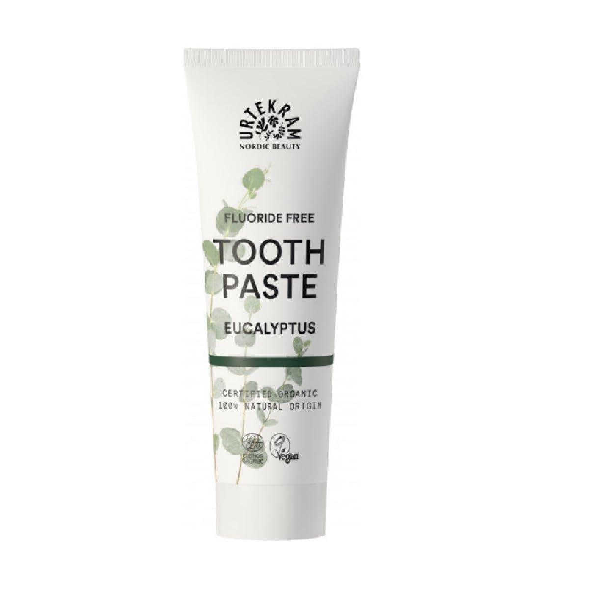 Urtekram Eucalyptus toothpaste cleans effectively with ingredients of 100% natural origin and has an intensive and refreshing taste. Toothpaste has the natural, off-white color of natural chalk. Toothpaste contains aloe vera, myrrh, and magnolia bark extract because it helps your gums and provides additional care.