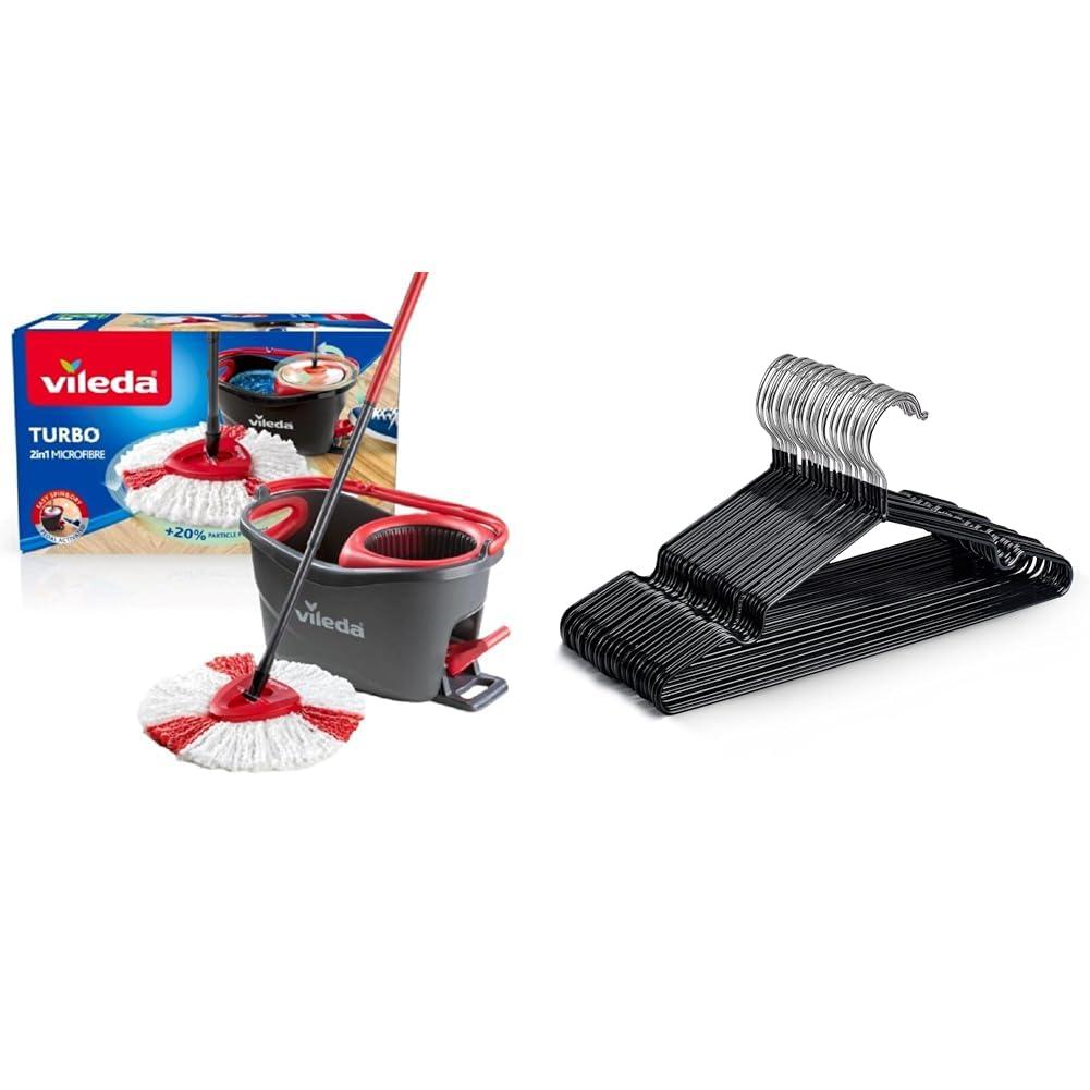 Vileda Turbo Microfibre Mop And Bucket Set, Spin Mop For Cleaning Floors, Set Of 1x Mop And 1x Bucke & KEPLIN 20 Pack Premium Rubber Coated Metal Hangers - Heavy DutY