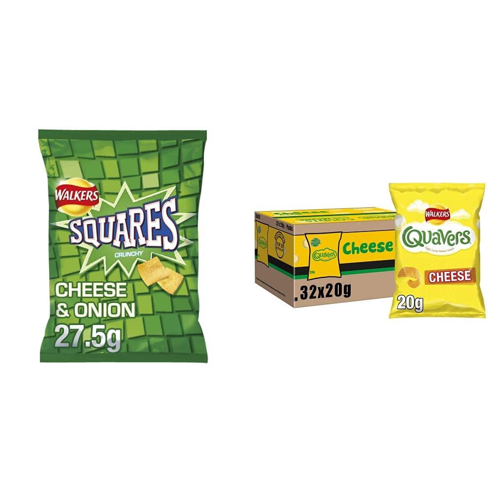 Walkers Crisps Squares Cheese and Onion Snacks Box, 27.5 g (Case of 32) (Packaging may vary)
