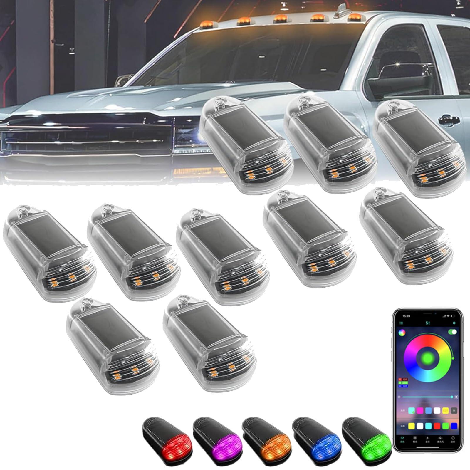 Wireless Cab Lights for Truck, 2024 New Solar Cab Lights, Punch-Free LED Lights, 7 Colors App Control, Roof Lights for Universal Car